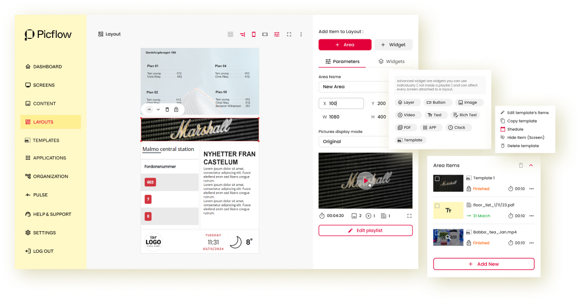 PicFlow är mer än bara en integrationsmjukvara. Det är en plattform som själv hanterar alla tjänster inom digital skyltning.